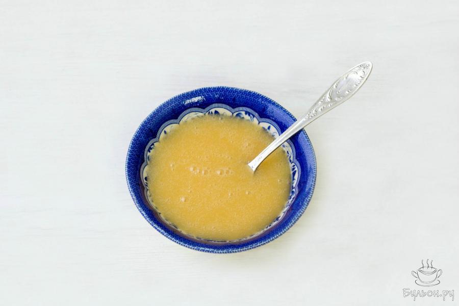 5. Для сиропа смешайте мед, растительное масло и теплую воду. Пропорции компонентов можно скорректировать на свой вкус, главное чтобы в итоге у вас получилось 125-150 миллилитров сладкого сиропа. Добавьте сироп в подготовленную смесь и перемешайте, чтобы равномерно увлажнить все хлопья.