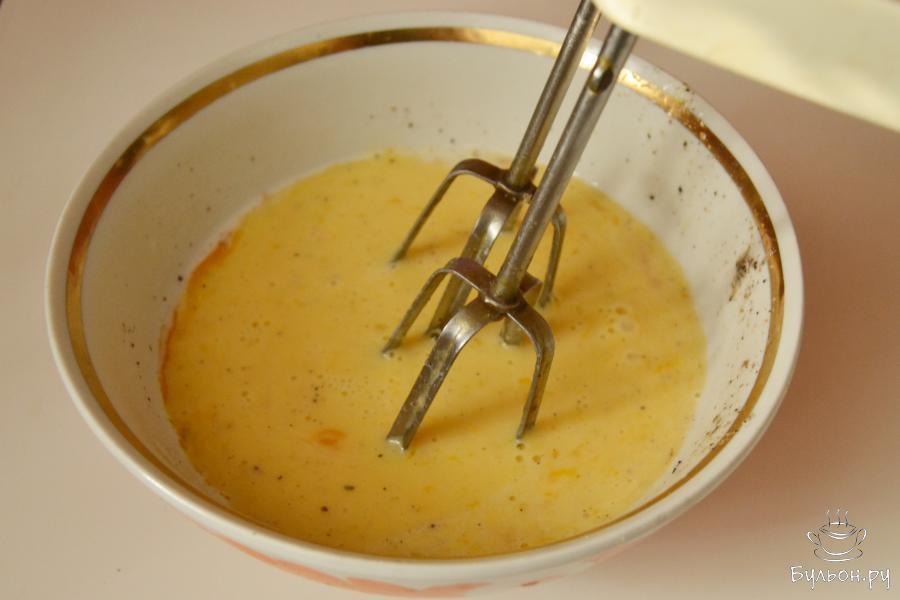 4. Перемешать все компоненты миксером, можно вручную. Наша задача не взбить яйца, а только перемешать.