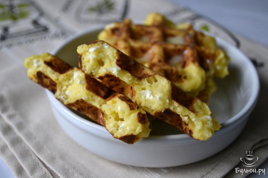 Сырники - это любимое многими блюдо, которое, обычно, подают на завтрак. В электровафельнице можно приготовить такие же сырники, как и на сковороде, только они без капли масла и интересной формы. Такие сырники обязательно придутся по вкусу деткам, которые не хотят кушать творог. Сырники можно взять с собой в дорогу, на перекус, они совсем не жирные и питательные. Кукурузная мука придает сырникам яркий цвет и характерный вкус.