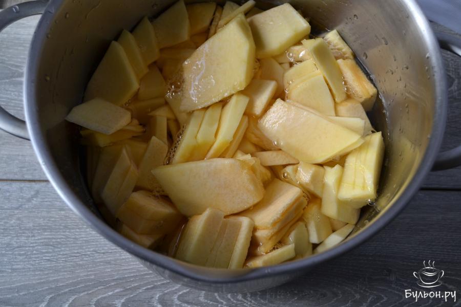 4. На умеренном огне сварить тыкву до полной мягкости. В зависимости от сорта и размера кусочков, понадобится от 20-25 минут и больше.