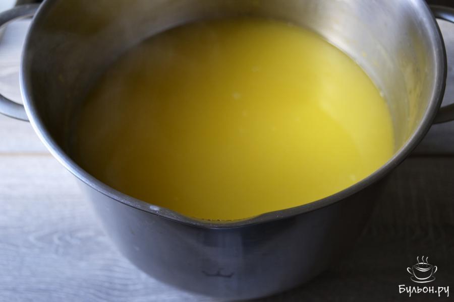 6. Всыпать сахар и лимонную кислоту, исходя из своих вкусовых предпочтений и сладости тыквы. Перемешать, довести сок до кипения, прокипятить, чтобы сахар полностью растворился. Если сок очень густой, разбавить кипяченой водой, до нужной густоты сока.