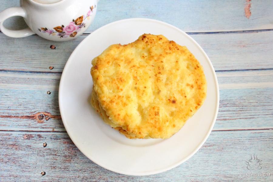 6. Руками сформировать лепешки нужного размера. Выложить лепешку на сковороду с разогретым маслом. Обжарить лепешку с двух сторон по 2-3 минуты, до золотистого цвета.