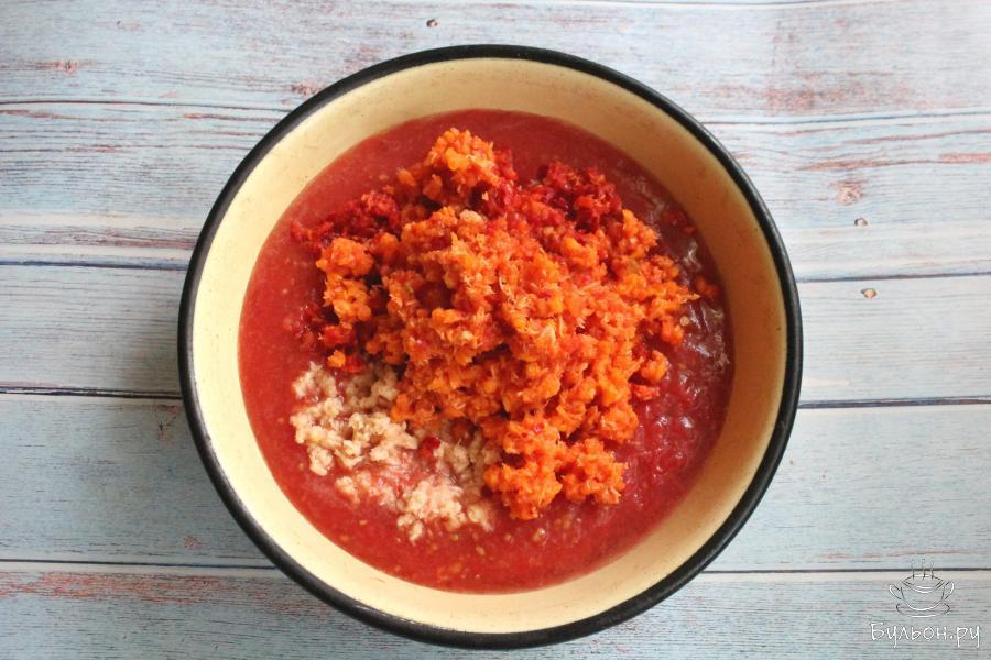 Яркий и острый соус в зимние дни всегда будет к столу. Предлагаю приготовить горлодер из помидоров, сладких перцев и моркови на зиму. Соус порадует вас своим насыщенным вкусом, он сочный, ароматный и очень вкусный. Этот горлодер отличается от классического тем, что тут в составе есть морковь, она смягчает остроту и добавляет соусу сладость. Готовится горлодер просто и достаточно быстро. Такой соус отлично подходит ко многим вторым блюдам.