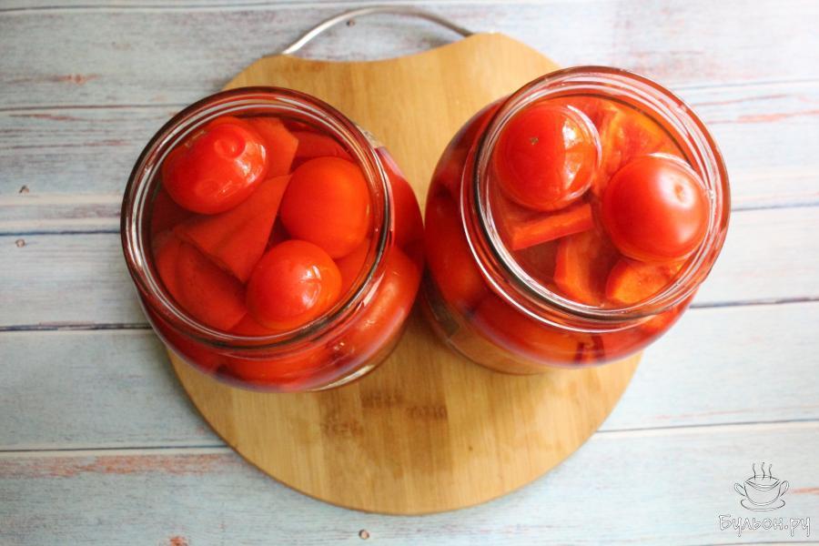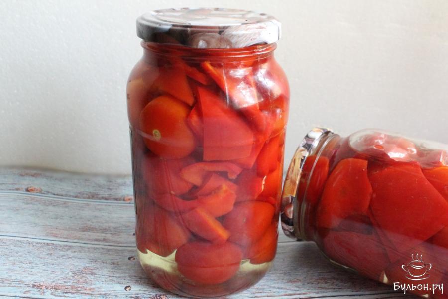 Сладкие помидоры с красными болгарскими перцами - это заготовка на зиму, которая замечательно хранится при комнатной температуре, готовится она быстро, без стерилизации и варки. Помидоры действительно получаются сладкие, вкусные и яркие, тут нет перца и чеснока. Если вы любите сладкие консервированные овощи, то попробуйте приготовить сладкие помидоры с красными болгарскими перцами на зиму по этому рецепту. Такая вкусная и сочная закуска поднимет аппетит и настроение в самые холодные зимние дни.