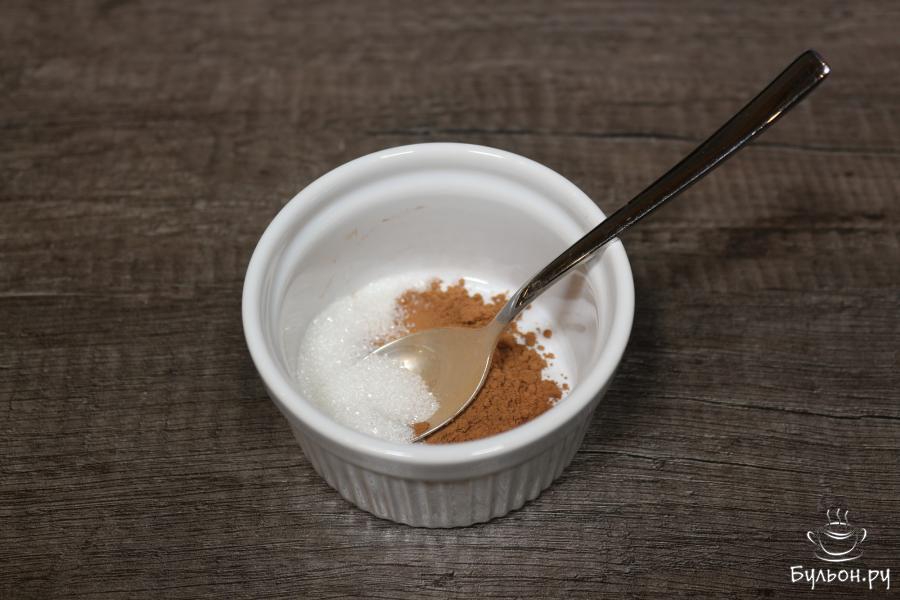 2. В небольшую емкость всыпать какао-порошок и сахарный песок, добавить кипяток и размешать, чтобы растворился сахар.