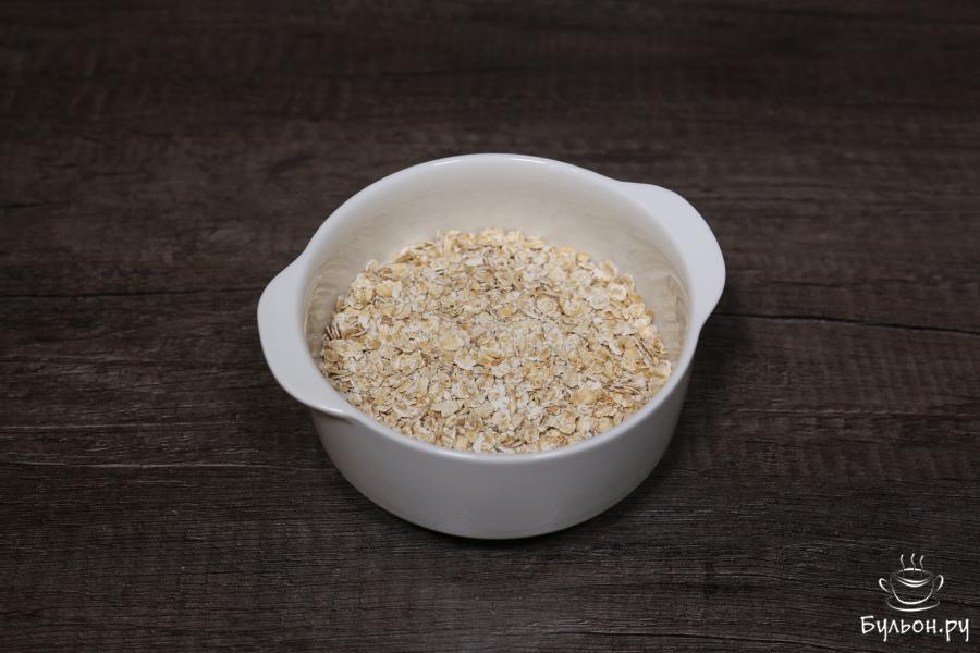 1. Высыпать овсяные хлопья в емкость. Использовать хлопья не быстрого приготовления и крупного размера.