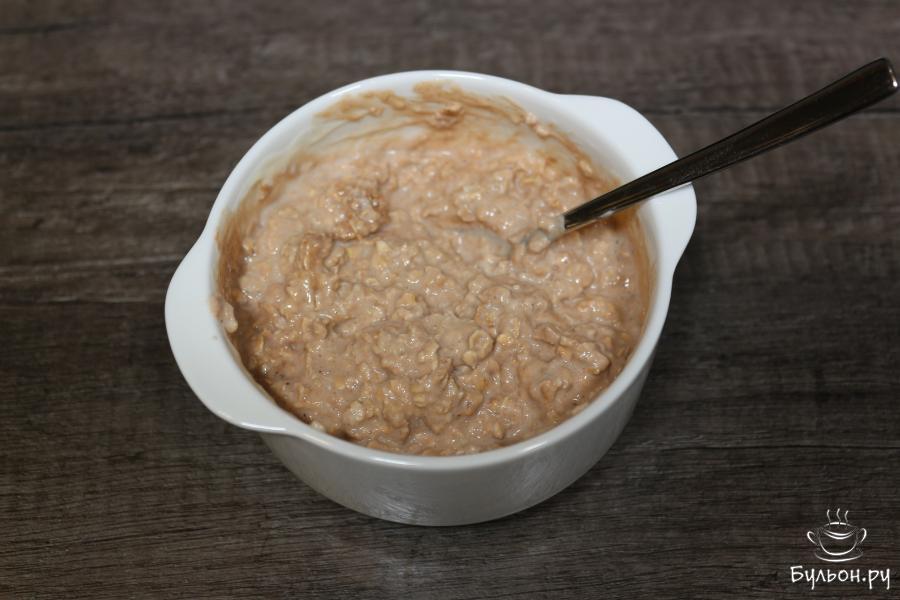6. Все продукты перемешать. Закрыть емкость и отправить ее на ночь в холодильник, чтобы набухли хлопья и приготовилась за это время ленивая овсянка.
