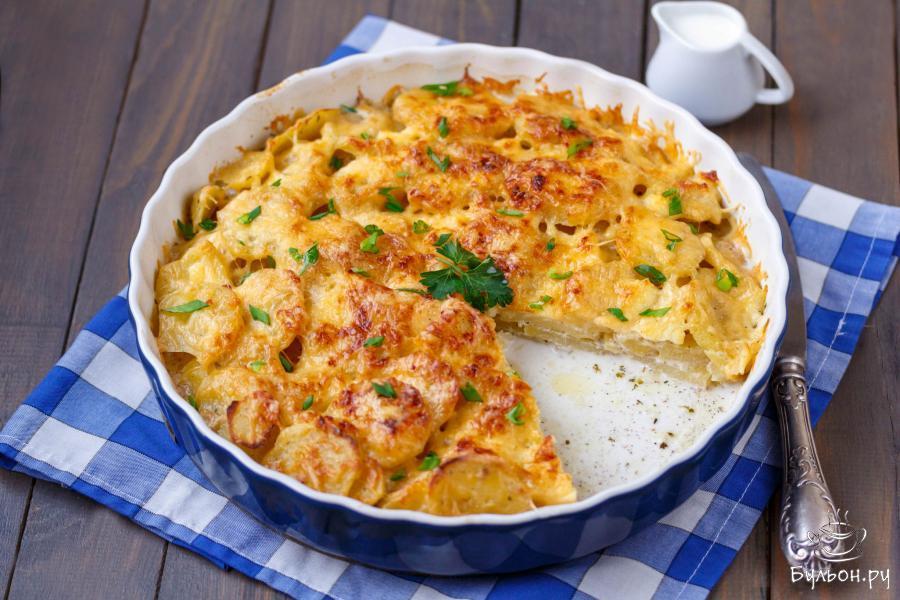 Картофельный гратен также известный как гратен дофинуа - простой, но невероятно вкусный гарнир, который станет отличным дополнением к праздничному меню и привнесет приятное разнообразие в будни. Томленный в сливках, укутанный в золотистую сырную корочку, картофель, приготовленный по этому рецепту, получается невероятно соблазнительным как на вид, так и на вкус. Сочные, пропитанные сливками ломтики картофеля обладают изысканным и нежным вкусом, благодаря которому картофельный гратен можно подавать и как самостоятельное блюдо, и в качестве гарнира к птице, мясу, рыбе и овощам.