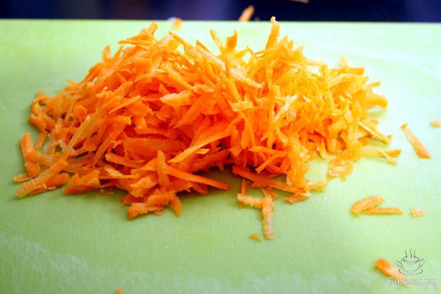 5. Морковь потереть на крупной терке. Перец можно мелко порезать, чтоб было поострее, либо оставить его целым для менее острого вкуса.