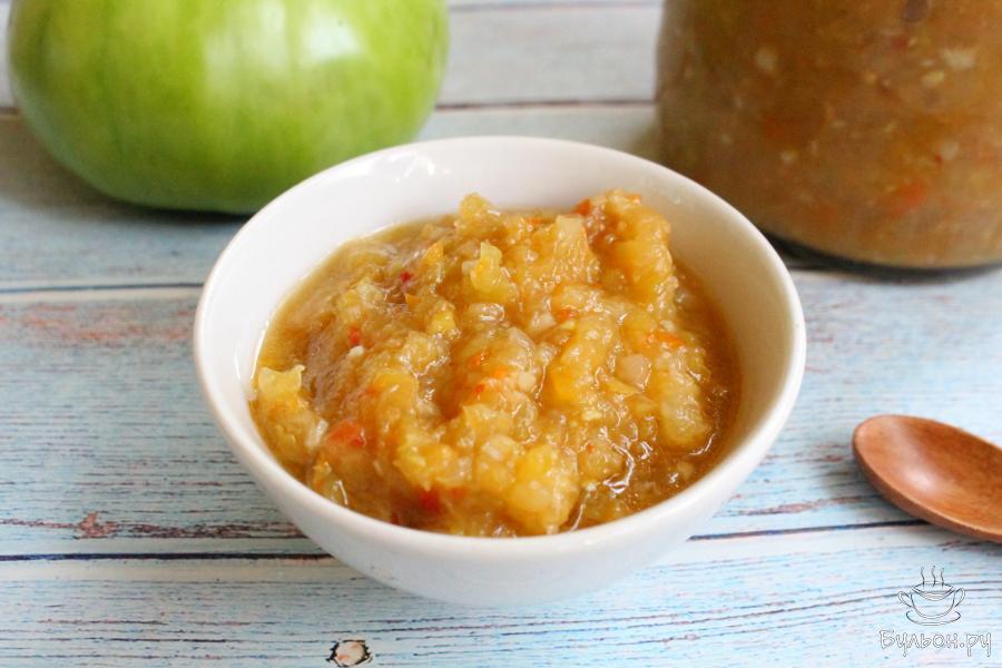 Соус из зеленых помидоров, болгарских перцев и чеснока понравится всем, кто любит пикантные, необычные овощные закуски и соусы. Этот соус получается с легкой кислинкой, освежающий, ароматный, легкий и очень вкусный. От него просто невозможно оторваться, настолько он сбалансированный по вкусу. Такой соус подходит ко многим вторым блюдам, им можно даже просто перекусить с кусочком свежего хлеба. Готовится соус просто и достаточно быстро. По желанию, соус можно сделать острый.