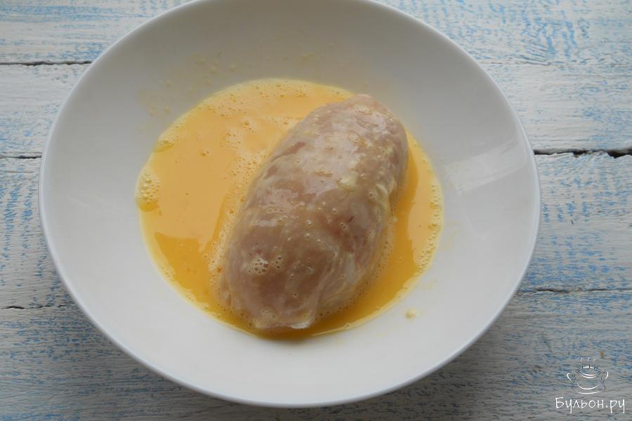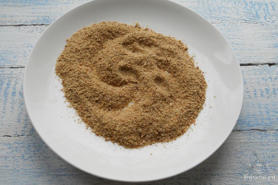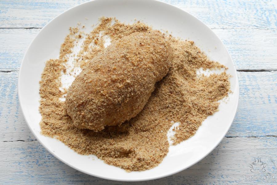 15. Хорошо обвалять в панировочных сухарях. Далее все повторить: обмакнуть в яйца и снова запанировать в сухарях.