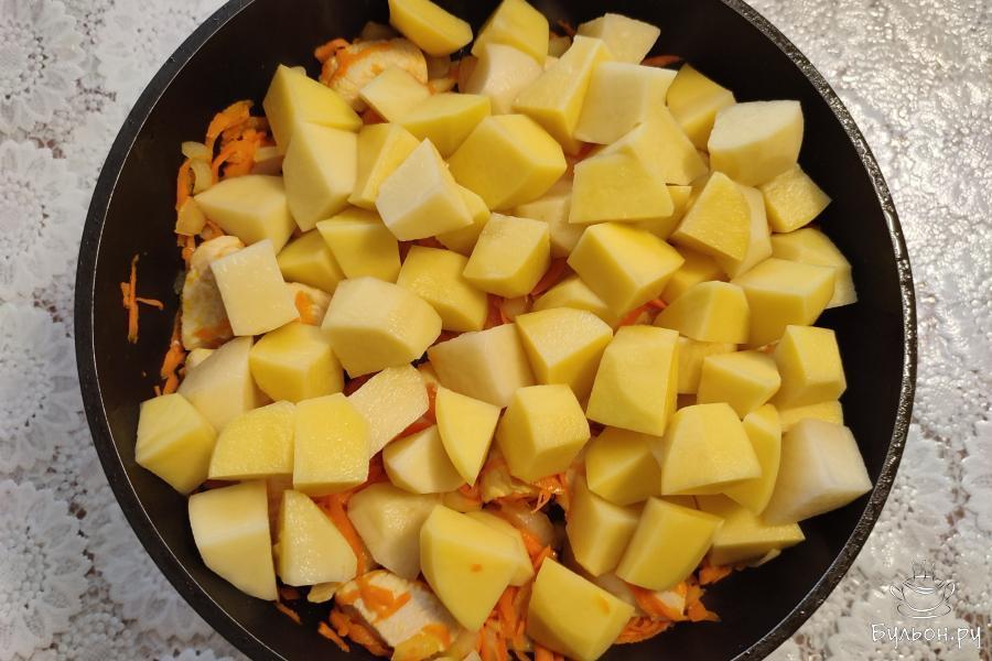 Жаркое из курицы и картофеля с томатной пастой - довольно простое, но вкусное блюдо, на которое потребуются самые обычные продукты и немного времени на приготовление. Куриное мясо (особенно филе) считается диетическим, так как оно легко усваивается организмом. Жаркое готовится в основном в тушеном виде или запекается. Поэтому такое блюдо подойдет, как для взрослых, так и для детей. Сегодня у меня для вас рецепт тушеного жаркого. Сытное, вкусное, домашнее блюдо для всей семьи. Попробуйте!