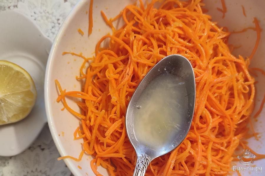Морковь по-корейски - всем известная вкусная закуска. Зачастую такую закуску готовят с добавлением уксуса. Я же хочу предложить вам свой вариант такой закуски из моркови. Корейская морковь с лимонным соком получается более приятная на вкус, нежели с уксусом. Хрустящая, ароматная и сочная. Очень вкусная. Также хочу обратить ваше внимание, что лимон может попасться очень кислый. Поэтому, после добавления лимонного сока в морковь, обязательно необходимо ее попробовать на вкус. Если будет кисло, то добавить небольшую щепотку сахара. Итак, приступим к приготовлению...