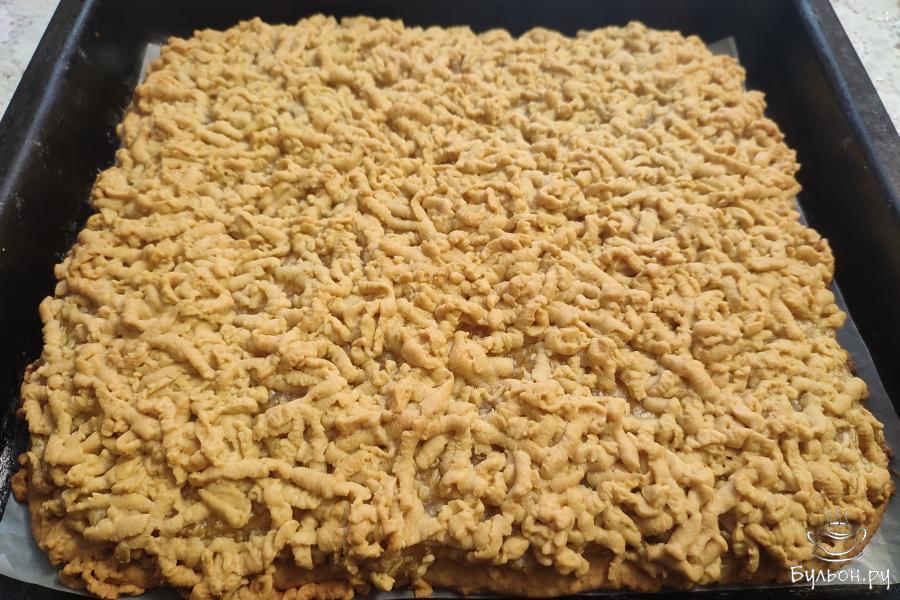 9. Отправить пирог в духовку. Выпекать при 180 градусах 30-35 минут. Подать пирог в теплом или холодном виде, предварительно нарезав на кусочки.