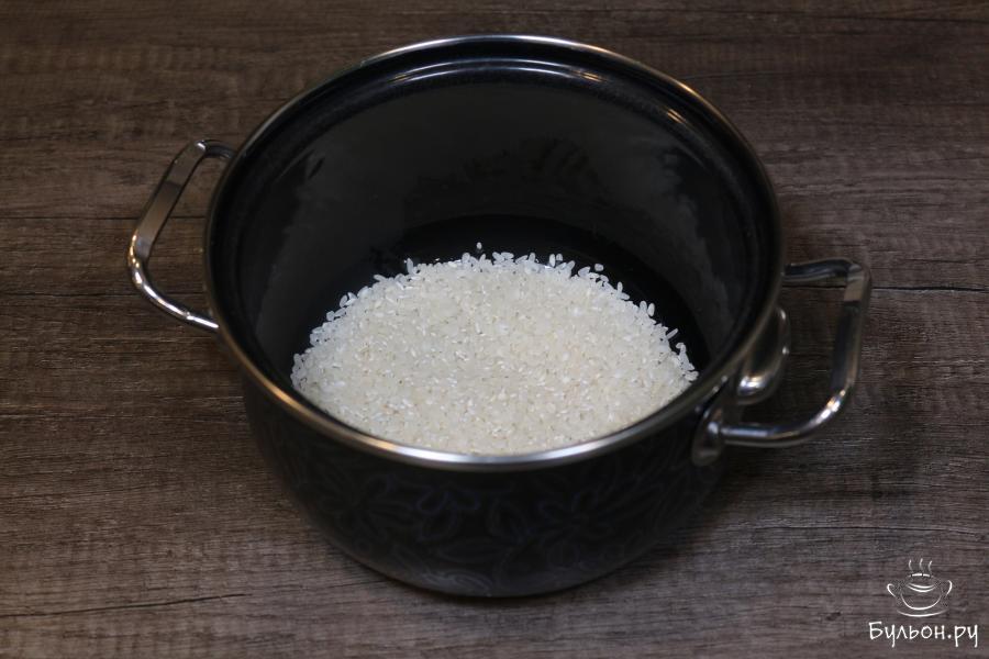 1. Отварить рис японский или круглозерный в подсоленой воде в соотношении 1:2. Варить нужно его под крышкой в течение 25 минут. В данном рецепте потребуется лишь 2,5 ст. л. уже отварного риса. Рис нужно остудить.