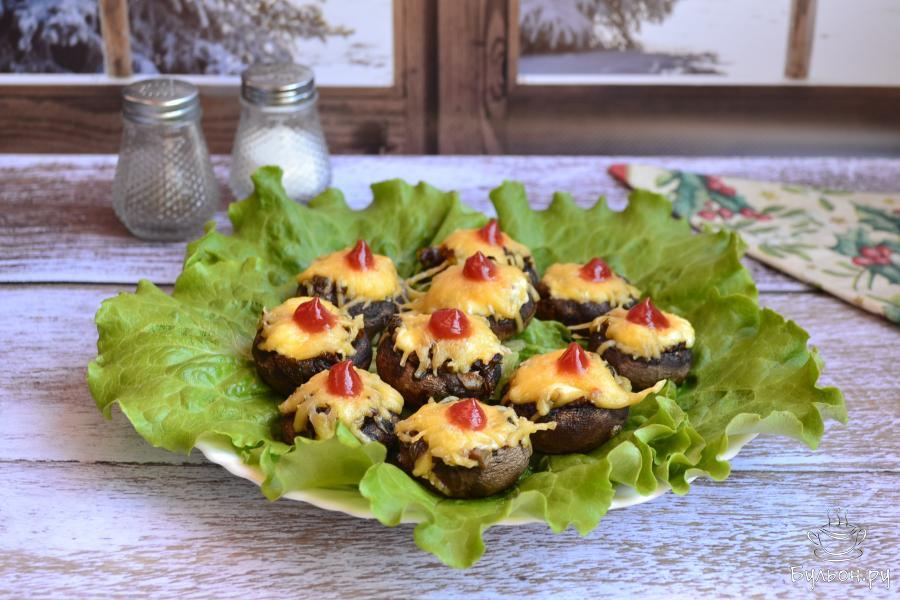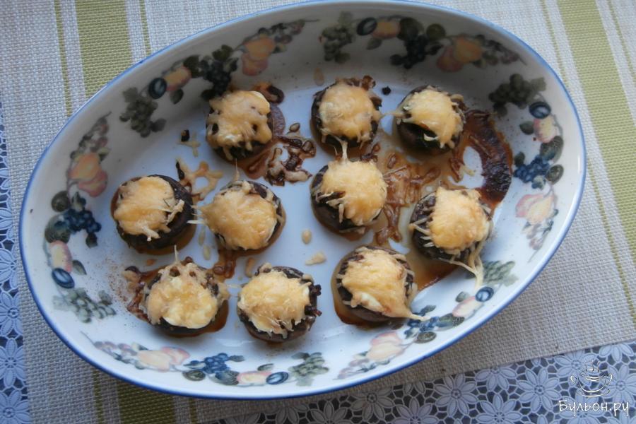 Если вы хотите приготовить на праздничный стол эффектную и вкусную закуску, предлагаю попробовать фаршированные шампиньоны. Фаршируются грибы луком и сыром, получаются такими вкусными, что оторваться невозможно. У меня шампиньоны были среднего размера, но лучше выбирать крупные. Готовится закуска совершенно просто и быстро, подается в теплом виде. Попробуйте обязательно, вы еще не раз будете возвращаться к этому рецепту.
