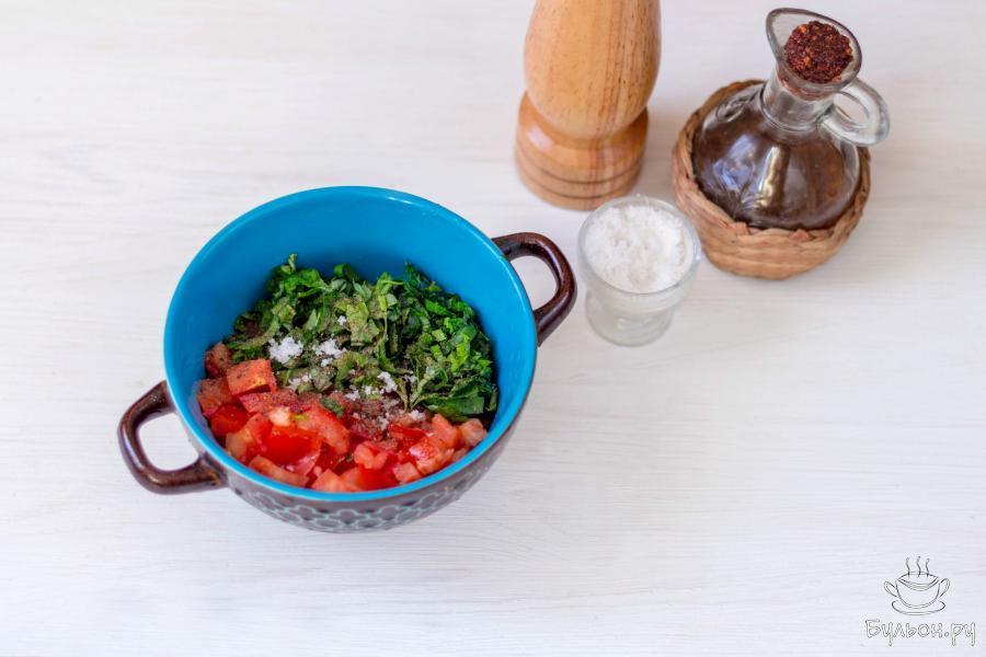 6. Смешайте подготовленные компоненты. Добавьте 1 столовую ложку оливкового масла, немного соли и молотого черного перца по вкусу.