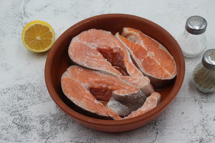 2. Кусочки рыбы промыть, очистить от чешуи и промокнуть бумажными салфетками, чтобы удалить лишнюю воду.