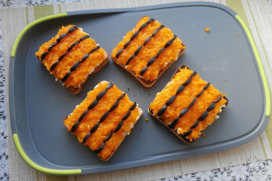 Уже сейчас мы начинаем задумываться, что будем готовить на новогодний стол. Так, как следующий год - это год Тигра, по традиции несколько блюд должны быть тематическими. Предлагаю вам приготовить яркие, красочные и очень вкусные тосты в тигровом оформлении, которые точно не останутся не замеченными и будут съедены одними из первых. Готовятся тосты очень просто, а для их украшения понадобится чуточку терпения и аккуратности. Рекомендую.