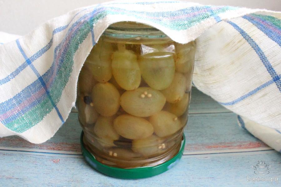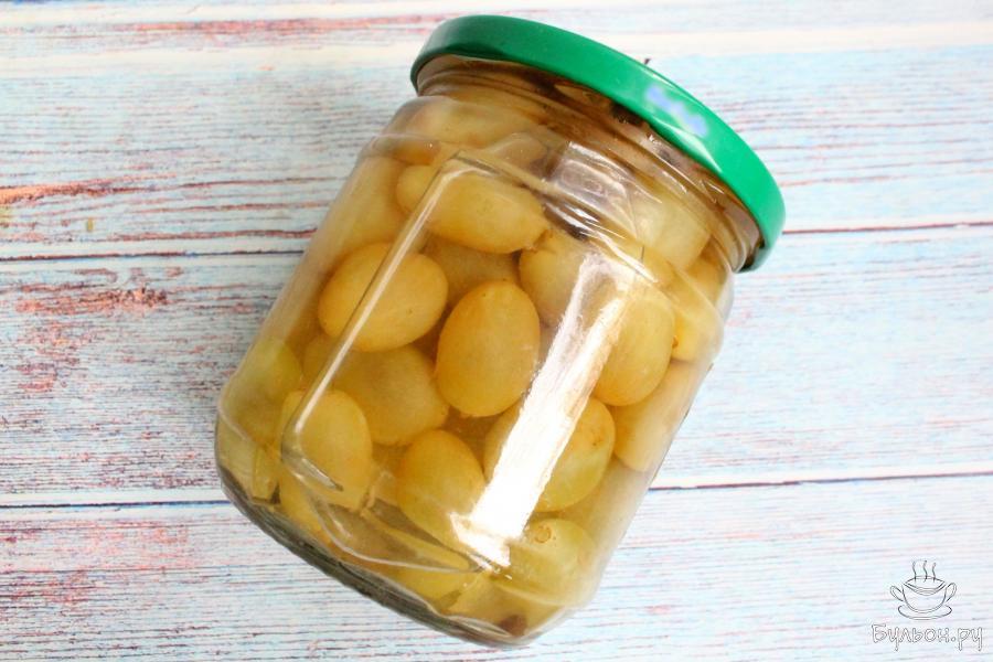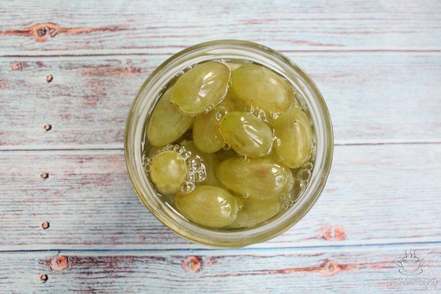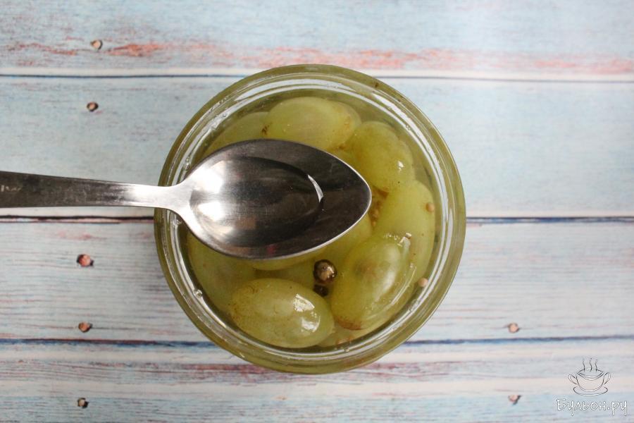 Маринованный виноград с горчичными зернами - это необычная и пикантная закуска, которая порадует вас в зимние дни. Такой виноград можно подать как самостоятельно, так и использовать его для приготовления разнообразных салатов, дополнить им мясную или сырную тарелки. Виноград получается кисло-сладкий, вкусный и ароматный. Для приготовления этой заготовки можно использовать столовый уксус, а можно заменить его на 5-6 ст. л. яблочного уксуса. Если вы решили использовать яблочный уксус, то его нужно будет добавить в кипящий маринад, сразу убрать посуду с маринадом с огня и залить им виноград.