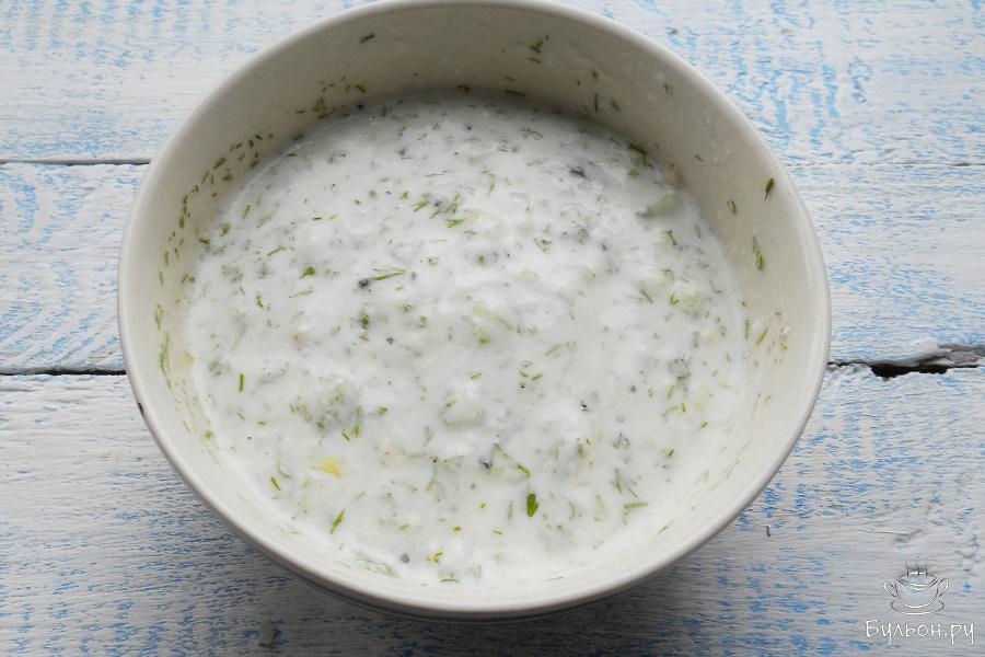 7. Переложить соус дзадзики в пиалу и подать к мясу, рыбе или овощам. Очень свежий и вкусный соус. Приятного аппетита.