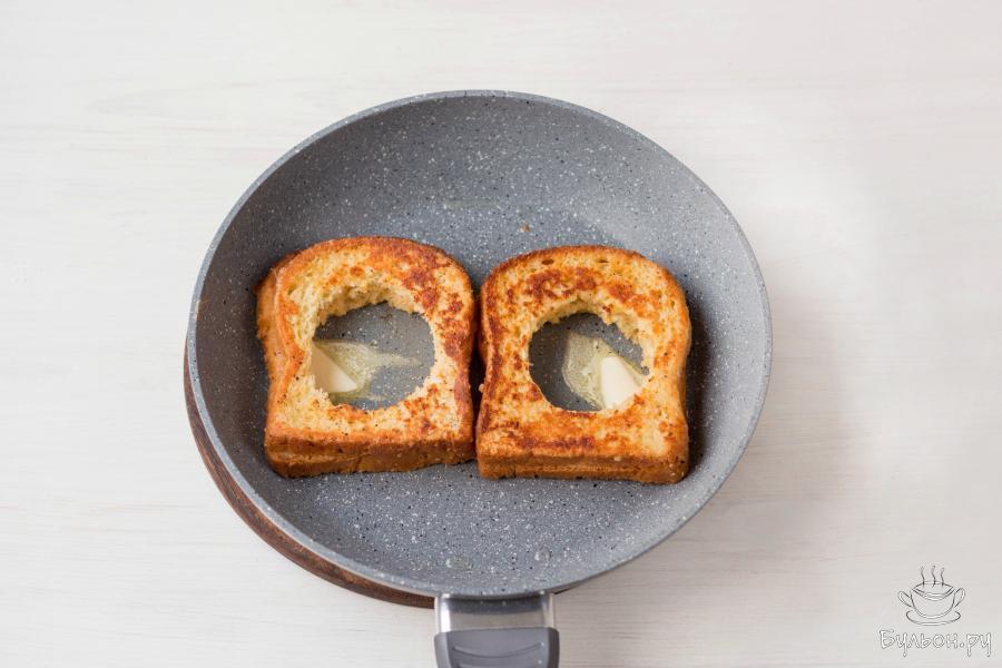 6. Затем, переверните хлеб и добавьте в каждое отверстие в мякише небольшой кусочек сливочного масла.