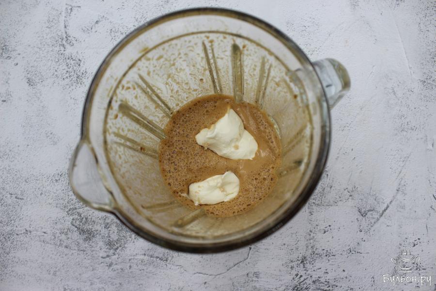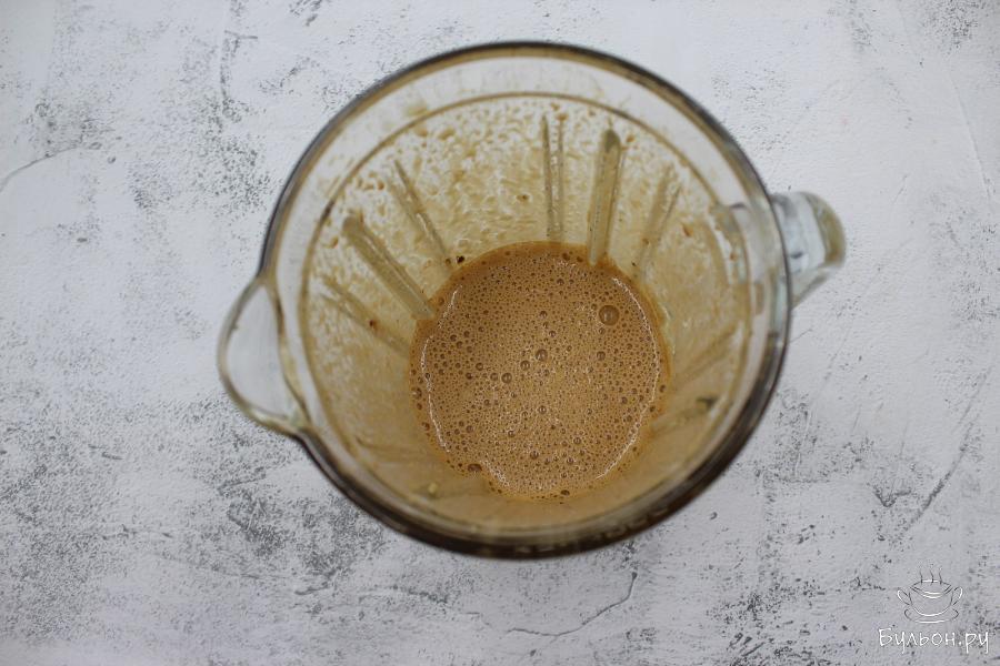 1. В блендер, для взбивания коктейлей, выложить растворимый кофе и сахарный песок. Влить воду, желательно холодную, поскольку наш напиток прохладительный, но можно использовать и воду комнатной температуры.