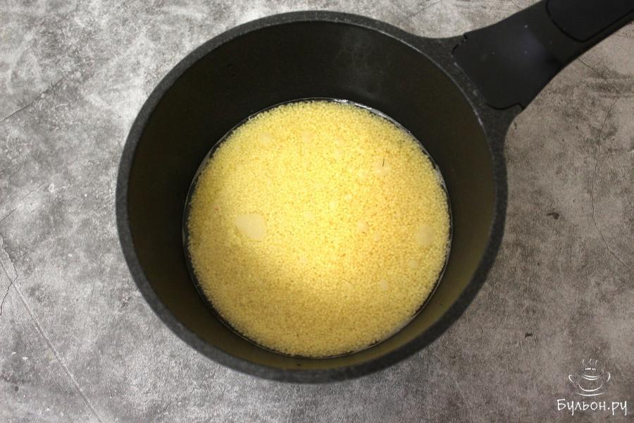 3. Ковшик закрыть крышкой, выключить огонь и, не снимая ковшик с плиты, дать настояться кускусу в течение 7 минут.