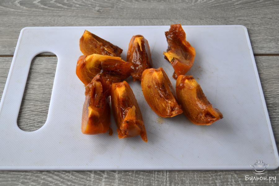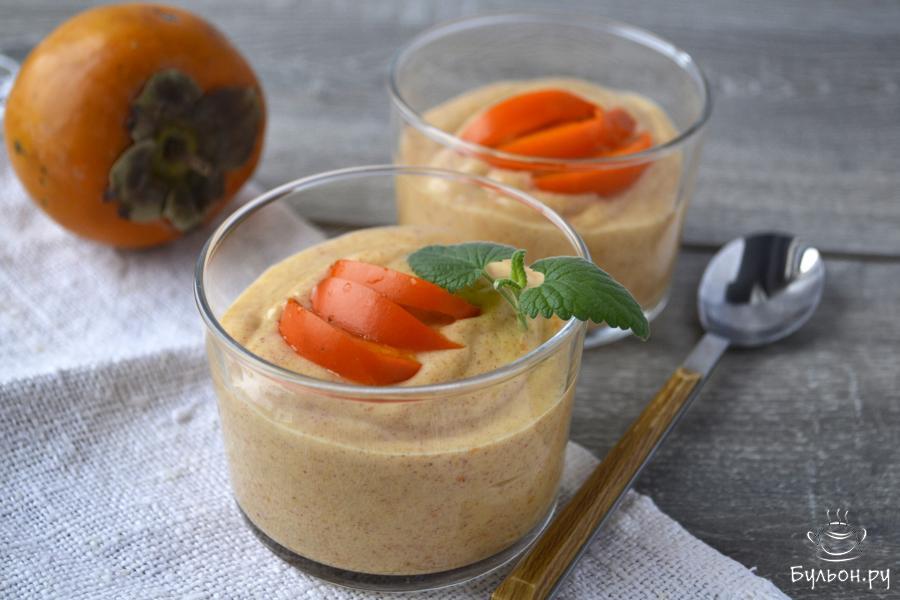 6. Перелить густой смузи в стаканы, украсить тонкими дольками хурмы и наслаждайтесь очень вкусным и полезным напитком.