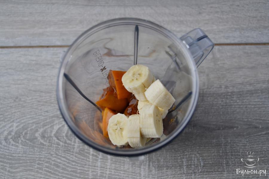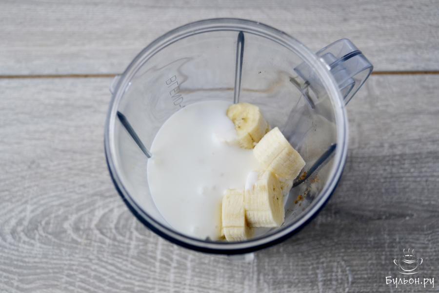 5. Измельчить ингредиенты до однородной консистенции. Густоту напитка регулируйте количеством добавляемого кефира.
