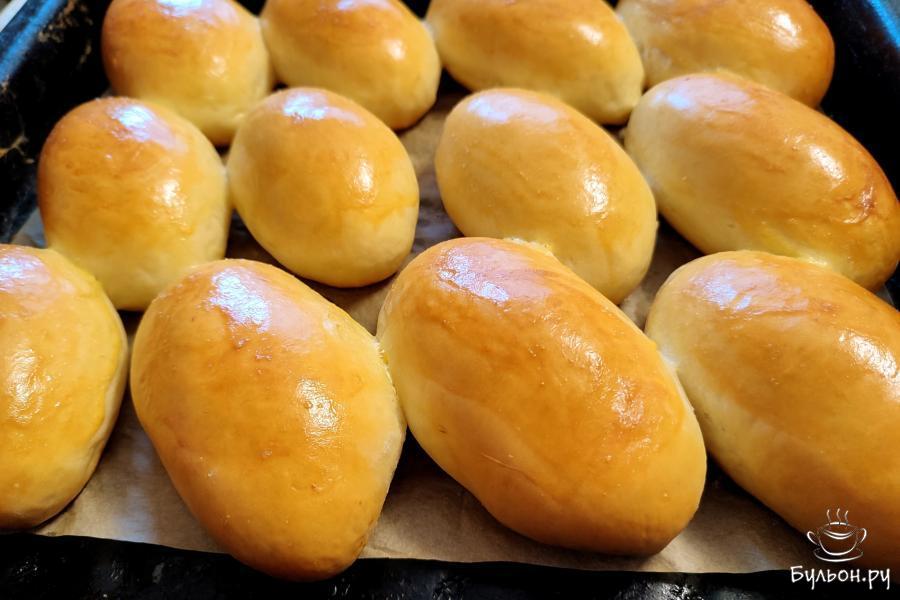 13. Смазать пирожки яйцом, выпекать при 180 градусах 30 минут. Готовые пирожки немного остудить и подать к столу.