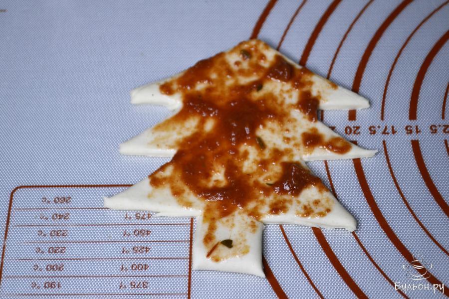 7. Переложить елочки на противень и выпекать в духовке 10-13 минут, заранее разогретой до 180 градусов, до готовности.