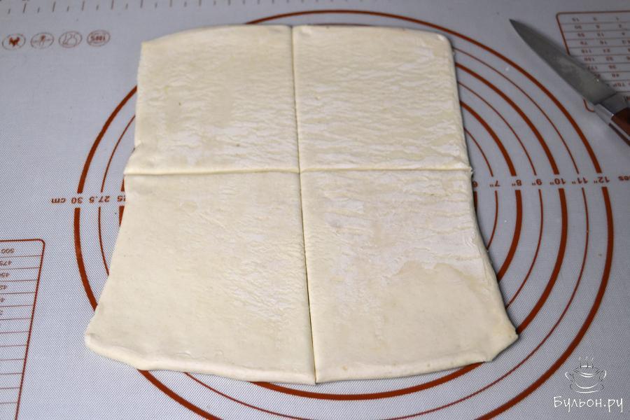 1. Подготовить продукты для приготовления пиццы-елочки. Дать слоеному тесту оттаять до такого состояния, чтобы его можно было легко раскатывать.
