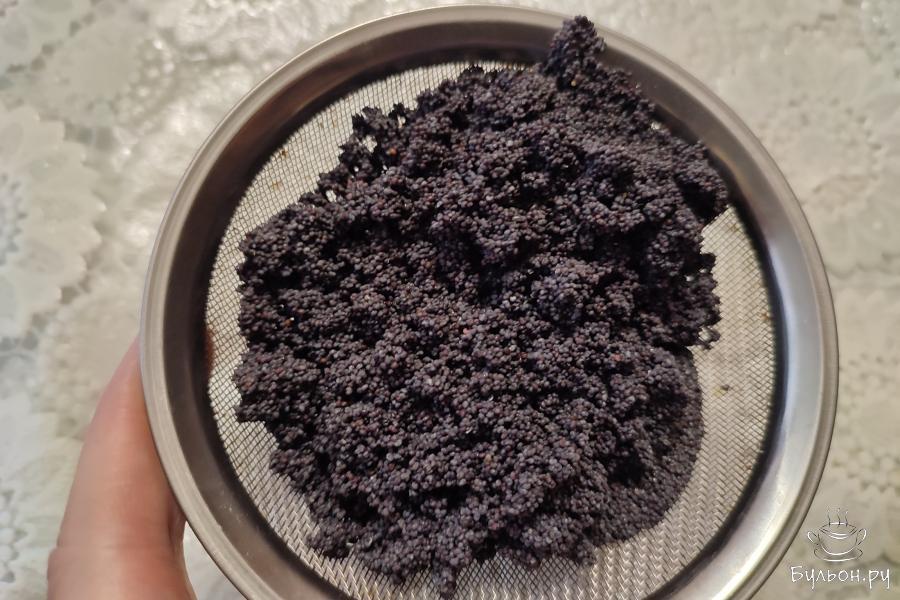 1. Мак залить водой. Поставить закипать, варить несколько минут. Затем мак откинуть на сито, дать стечь жидкости.