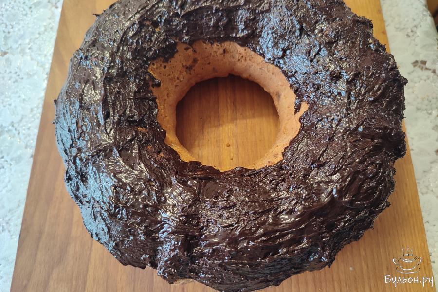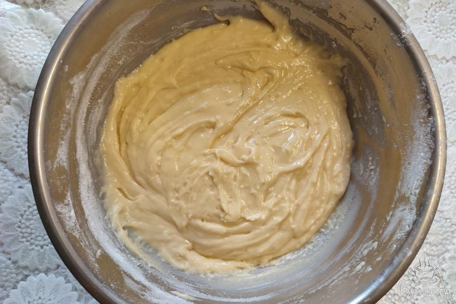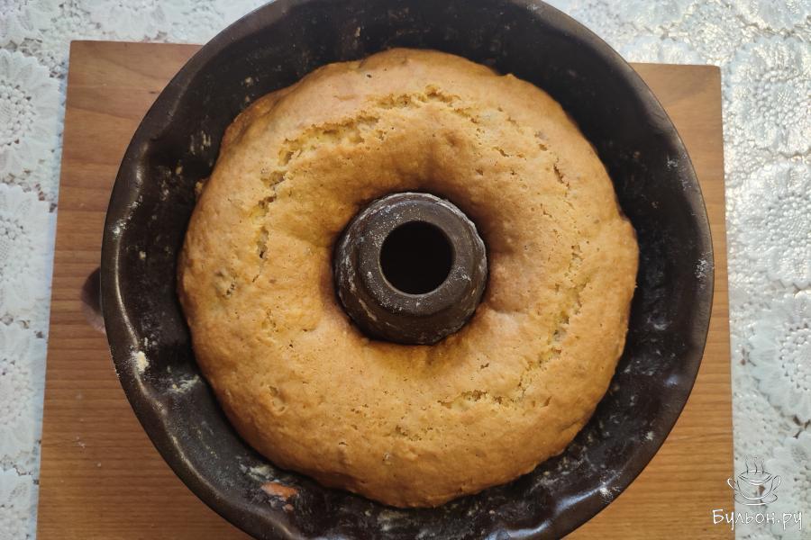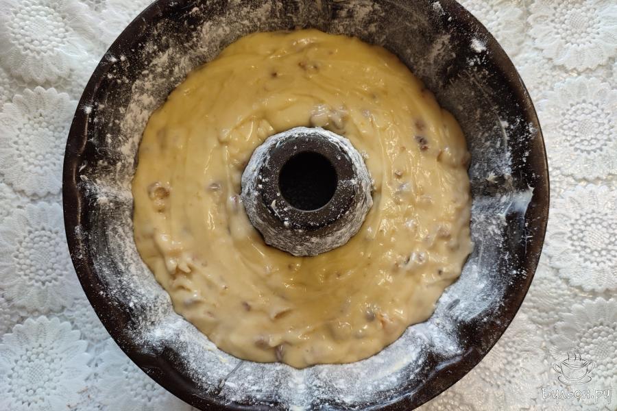 7. Форму, с отверстием в центре, смазать любым маслом, присыпать слегка мукой. Вылить тесто в форму.