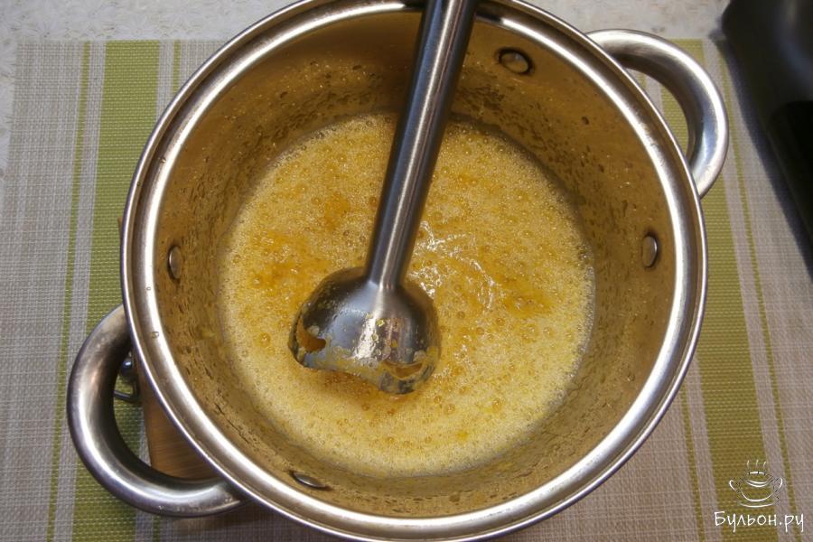 4. Пюрировать мандарины погружным блендером до гладкого состояния. Мелкая шкурка останется и если вы ее не любите, протрите все через сито.