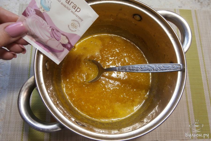 6. Довести мандариновое пюре до кипения и добавить разведенный в воде агар, перемешать и прокипятить все 5 минут.