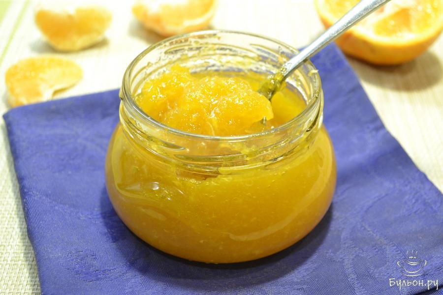 Изумительный получается джем из мандаринов по этому рецепту. Готовлю его уже не впервые, всем нравится. Такой джем подойдет для пирожков, пирогов, им можно начинить блинчики и т. д. Джем получается густым, очень вкусным и невероятно ароматным. Готовится он совершенно просто и быстро. В составе джема есть агар-агар, который служит загустителем. Если не хотите его добавлять, уваривайте джем до нужной вам консистенции. Рекомендую!