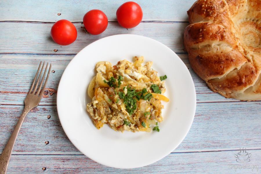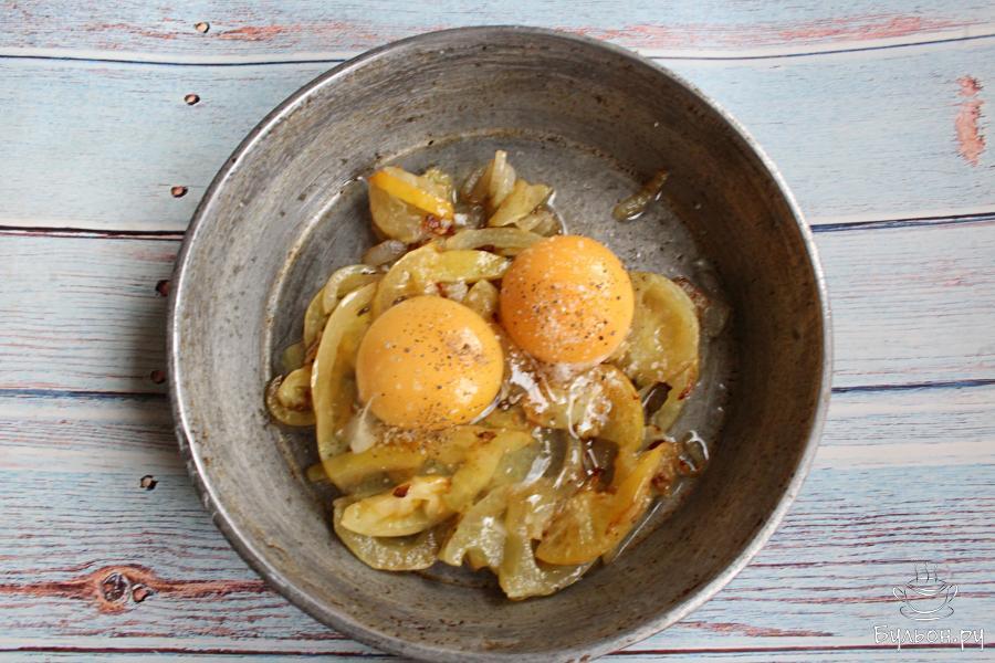 русская В сезон зеленых помидоров из них можно приготовить много разнообразных блюд не только на зиму, но и для повседневного меню. Яичница с зелеными помидорами и луком одно из таких блюд. Готовится яичница быстро и просто, ее всегда можно дополнить любимой зеленью и пряностями. Помидоры для приготовления желательно выбирать плотные и небольшого размера. Можно взять совершенно зеленые помидоры, а можно те, которые уже немного порозовели.