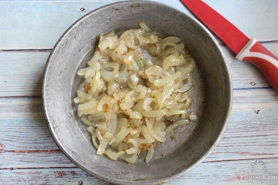 1. Лук почистить, промыть и нарезать мелко. Обжарить лук до мягкости на сковороде с разогретым маслом.