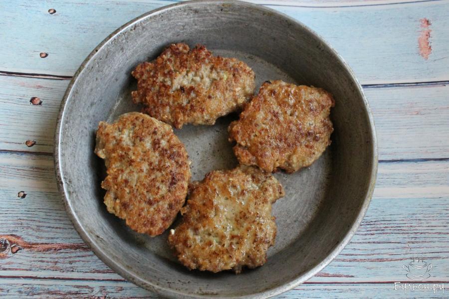 8. Сформировать небольшие котлетки и обжарить их, с двух сторон, на сковороде с разогретым маслом. Обжаривать по 2-3 минуты с каждой стороны.