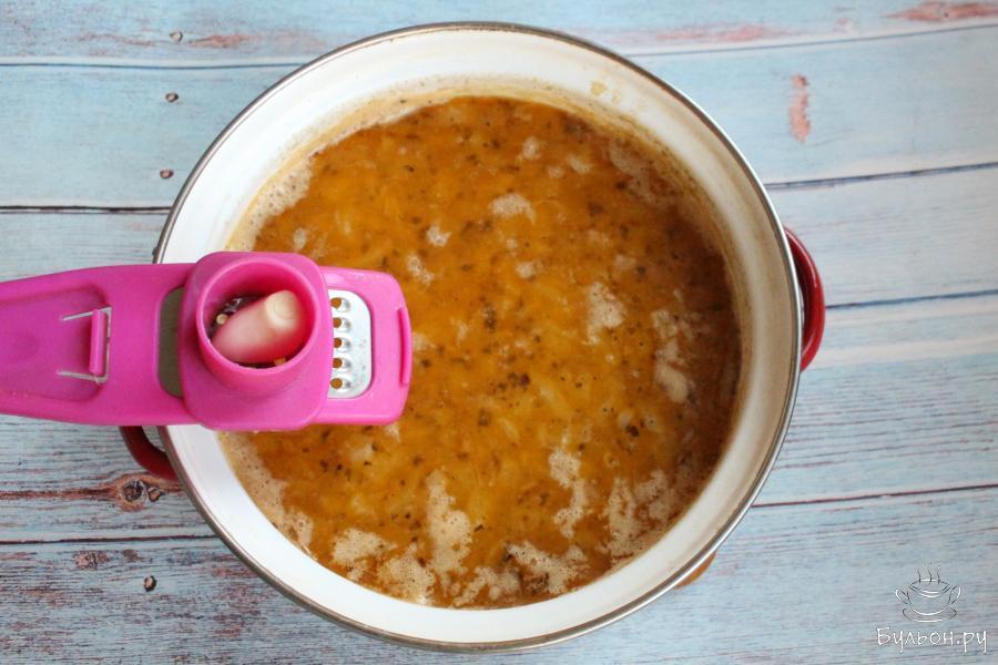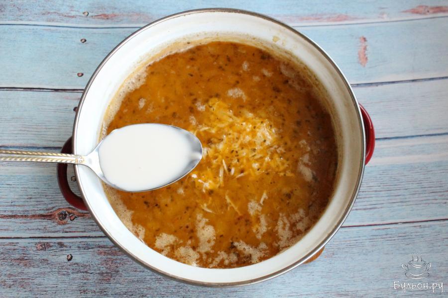 10. Добавить в суп сливки и сыр, перетертый через мелкую терку. Варить суп 10 минут. Пробуем всего ли хватает, выравниваем суп по своему вкусу.