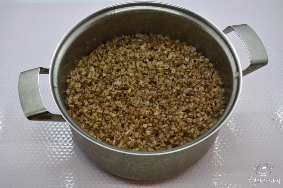 3. Сварить гречневую кашу до готовности, на среднем огне. Во время варки снять пену. В готовой каше вся вода должна впитаться.
