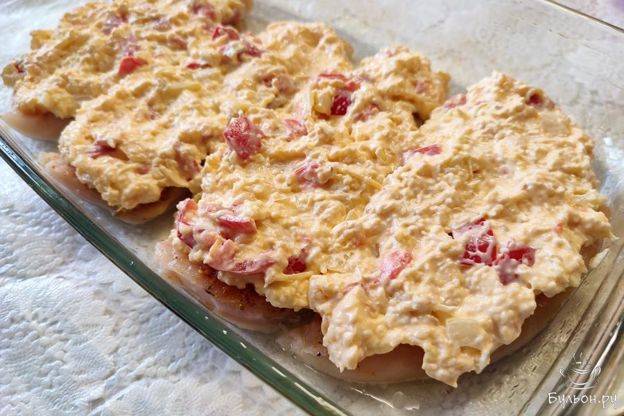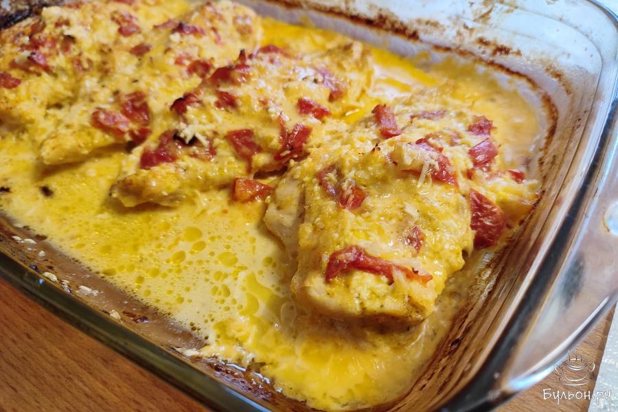 На праздники всегда хочется удивить и порадовать гостей вкусными и красивыми блюдами. К праздничному столу предлагаю приготовить нарядное, сытное блюдо - куриное филе под шубой в духовке. Мясо запекается большим куском и покрывается слоем из помидор, вареного яйца, лука и сыра. Курица получается сочной, ароматной и невероятно вкусной. Замечательный вариант мясного блюда к празднику и на сытный обед. Попробуйте!