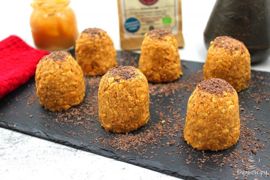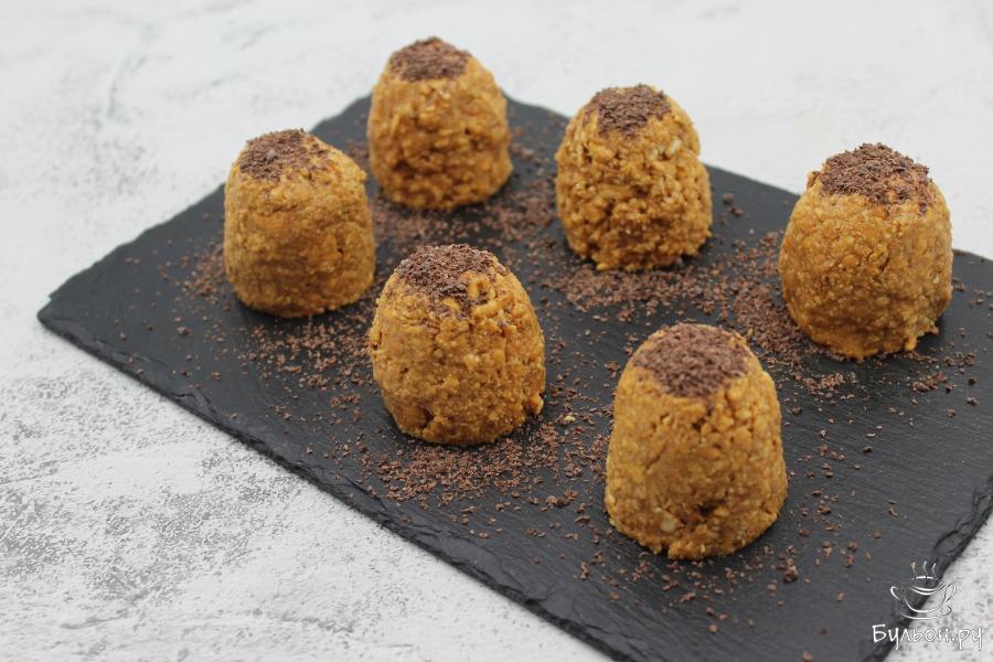 5. Сформированные пирожные выложить на блюдо, верх посыпать шоколадной крошкой и убрать в холодильник на 1 час.
