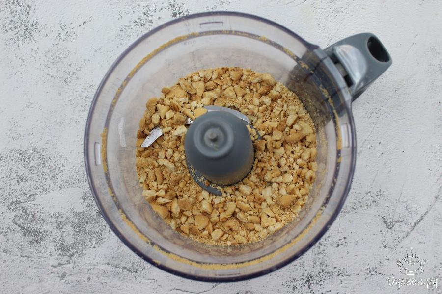 2. Измельчить крекер в блендере в крупную крошку. Если нет блендера, переложить крекер в плотный пакет и сверху пройдитесь по нему скалкой.