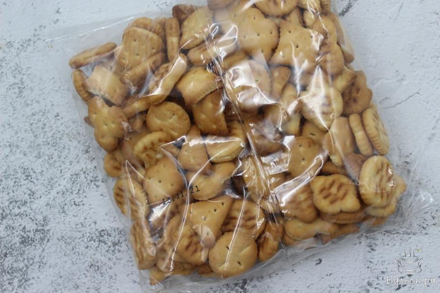 1. Для приготовления этого десерта понадобится крекер рыбки или подобный ему, данный крекер не должен быть соленым.