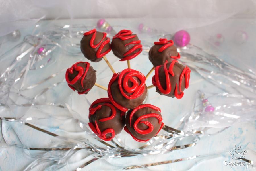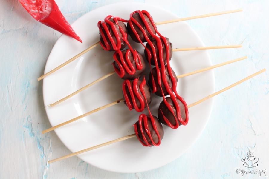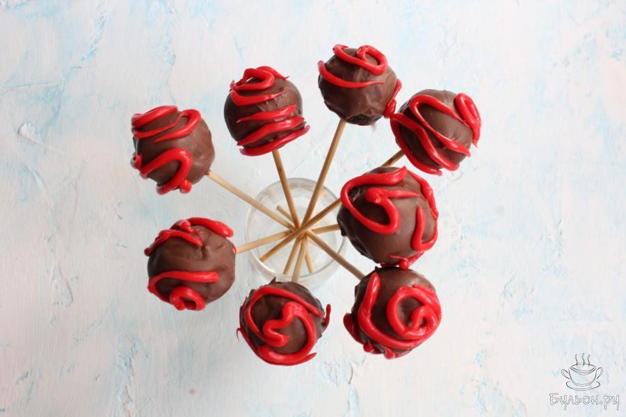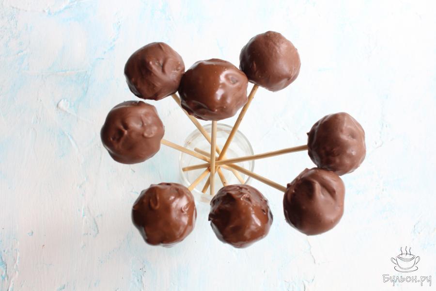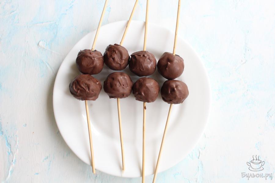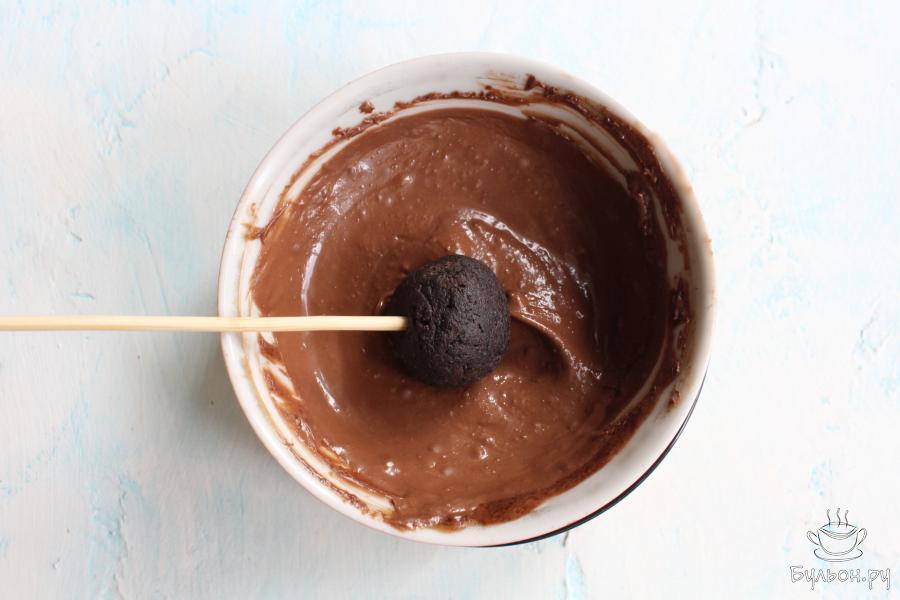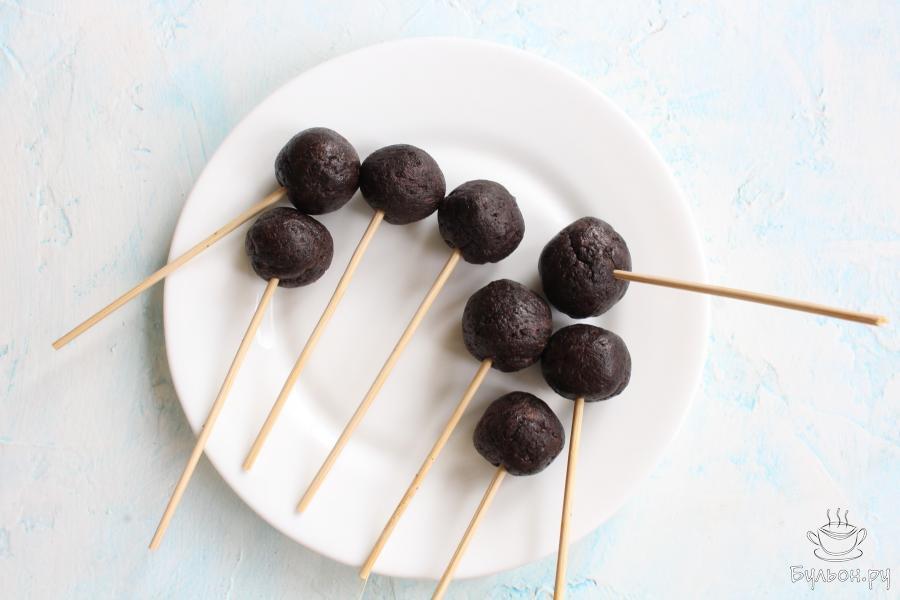4. Сформировать руками шарики желаемого размера. В каждый шарик вставить шпажку. Убрать кейк-поп в морозильную камеру на 10 минут.