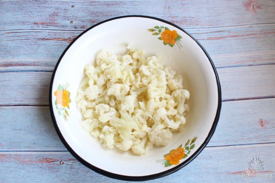 1. Капусту разобрать на небольшие соцветия промыть и отварить в кипящей подсоленной воде 5 минут до полуготовности. Слить с капусты воду.