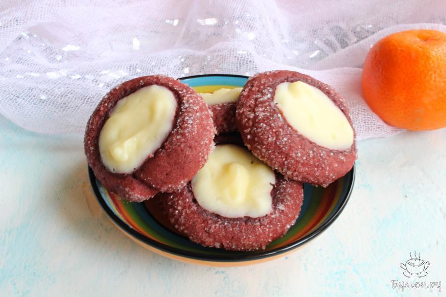 Печенье "Красный бархат" к новогоднему столу - это быстрая и нарядная выпечка, которая не займет много вашего времени на кухне. А это очень хорошо, потому что в праздники времени всегда не хватает. Печенье получается не только красивое, но очень вкусное, нежное, мягкое, оно просто тает во рту. Готовится печенье очень просто, с его приготовлением справится даже начинающий кулинар. Попробуйте приготовить такое печенье и вам наверняка захочется повторить его еще не раз.